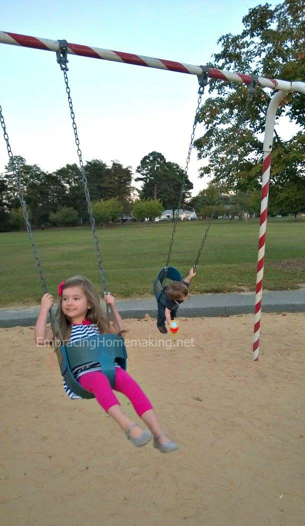 That picture of my son cracks me up. He always insists on swinging face down. I like to think he’s pretending to be Superman.