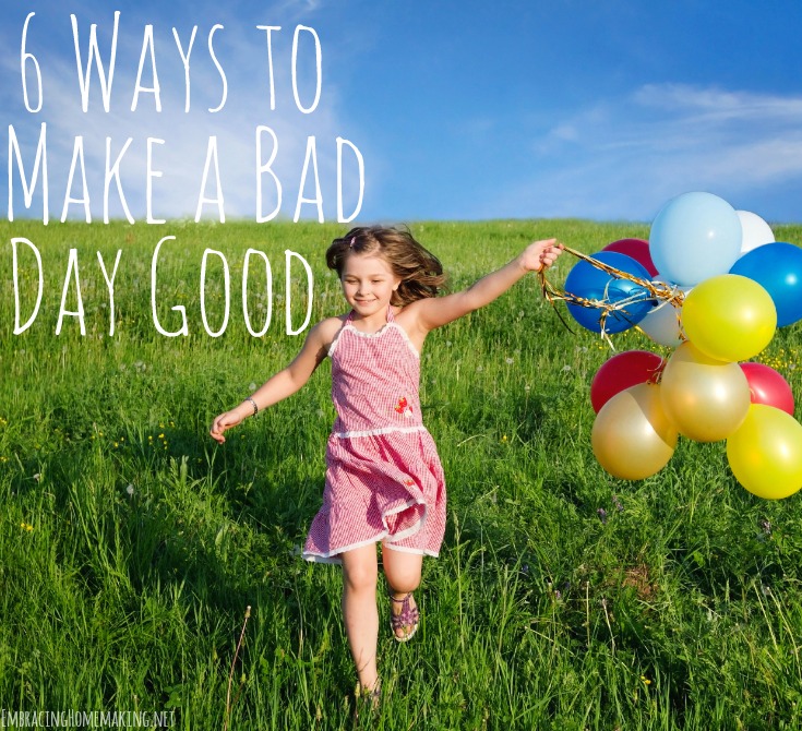 My most recent “bad day,” was this week and like most days, wasn’t absolutely terrible or completely bad. It just had some bad parts that I was choosing to dwell on and that messed up the rest of my day. Sometimes I need to step back and remember that while bad things may happen to me that are beyond my control, I can control my reaction. While I can’t avoid bad things happening I can direct my attitude and actions and make my day better. Here are a few things I do when I want to make a bad day good.