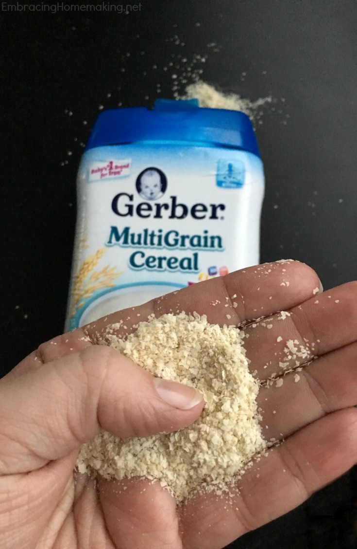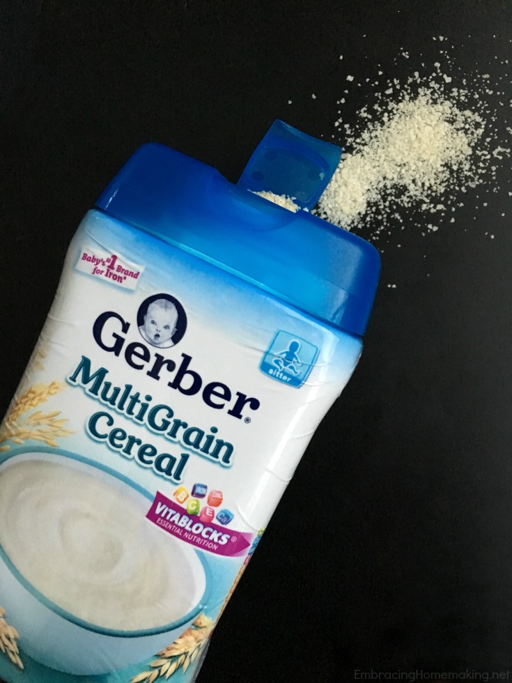 - – ¼ Cup Gerber MultiGrain Cereal (although the Oatmeal with banana flavoring might be good to try too!)