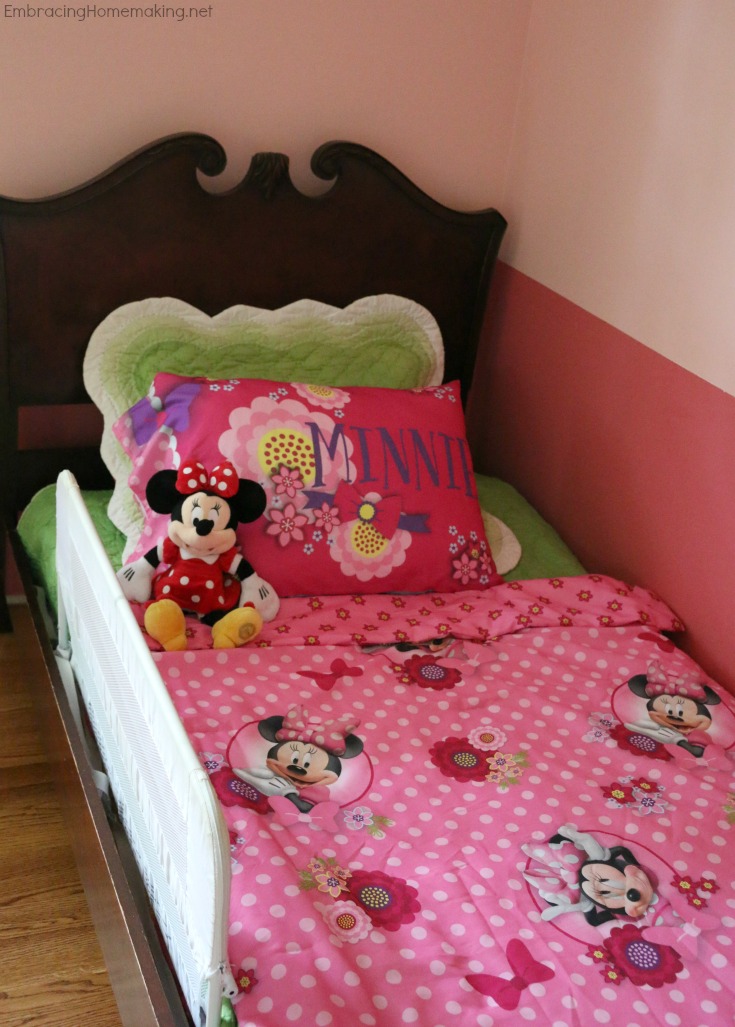 I recently bought you a new Minnie Mouse bedding set from Walmart to help you have something new and special as you got situated with your new room in our new house.
