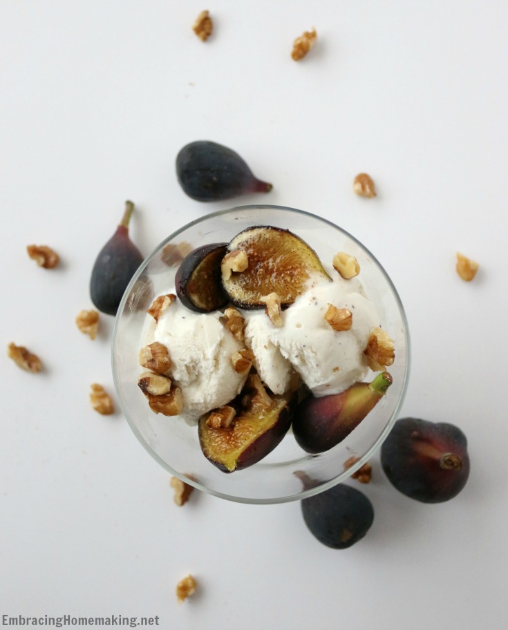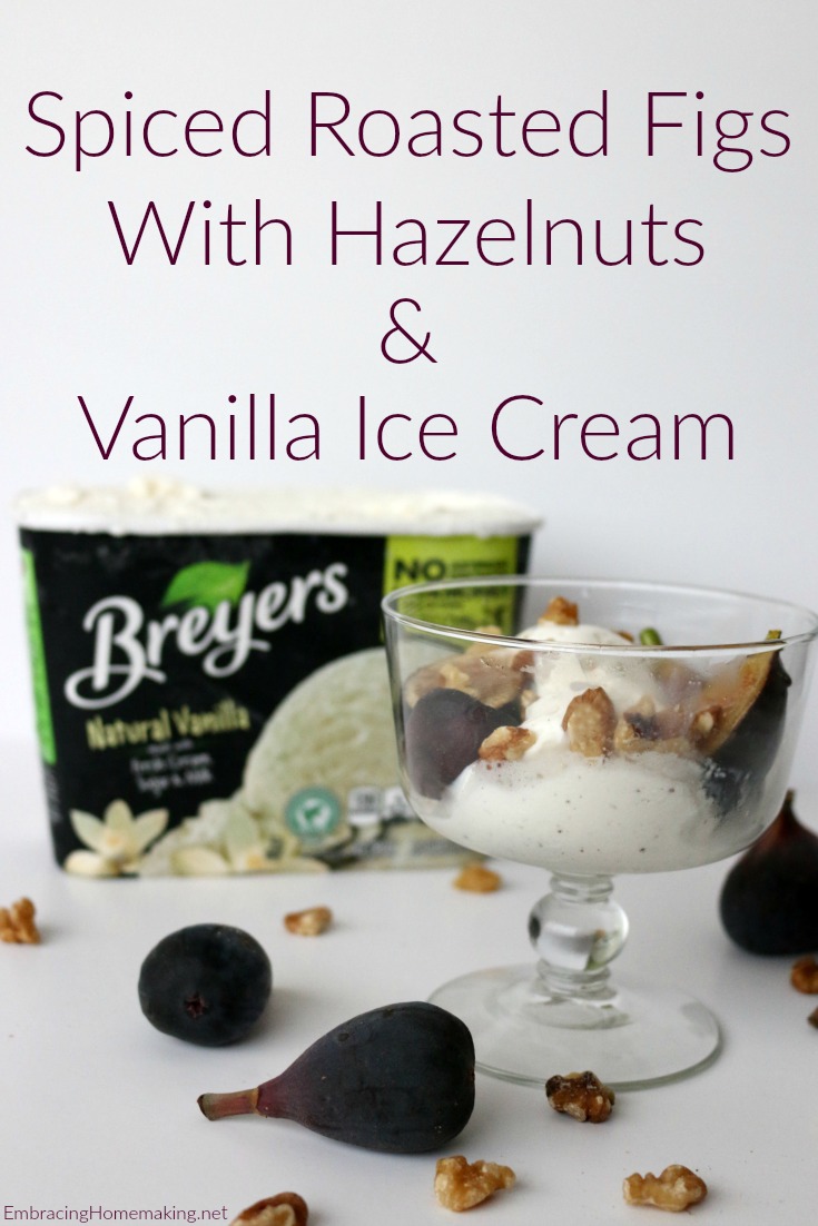 - Divide figs among 4 bowls. Spoon 1/3 cup of Breyers® Natural Vanilla Ice Cream into each bowl and sprinkle with hazelnuts.
