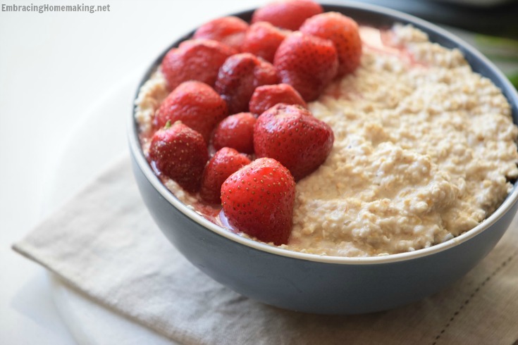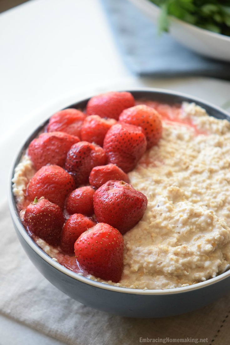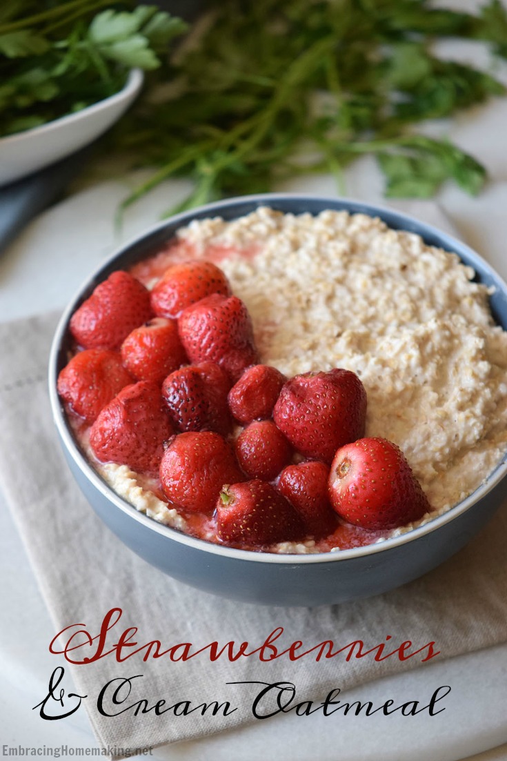 I have a thing for breakfasts, especially ones that are nutritious, delicious, fairly easy, and quick to cook. Lately, we’ve been on an oatmeal kick around here, so I’ve been experimenting a bit with recipes and flavor combinations, my favorite one so far? Strawberries and Cream Oatmeal.