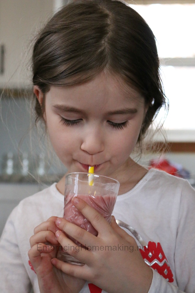 One thing that the three of us love are our daily smoothies. None of us are morning people so smoothies have to be a mid-day snack instead. My kids are always eager to try my latest concoctions, and I’m more than pleased to see my ridiculously finicky 2-year-old happily drinking a nutritious snack. We go to eating therapy once a week and I tell ya, some days the most nutrients he gets are from those smoothies!
