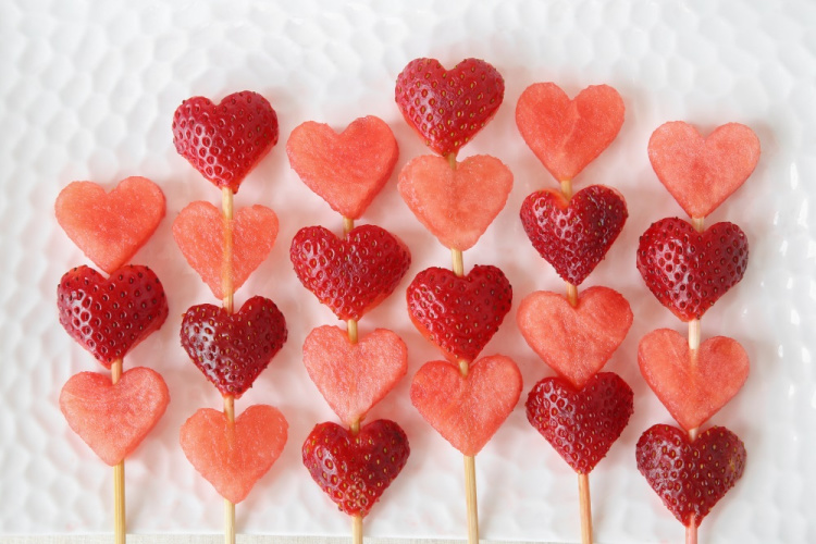 If you are going all out with treats and food, then consider serving finger foods. Create finger-sized sandwiches in a variety of options. Grab some crackers or chips for a side and even cut up some veggies with hummus so that your family can have a balanced option to eat during your inexpensive Valentine’s Day party event. These Valentine Kabobs (pictured above) are adorable and you could mix them up with pure fruit kabobs too. Strawberries halved to look like hearts would be great or you could cut any fruit into a heart shape with a mini cookie cutter. Chocolate dipped strawberries never fail to disappoint. Pink Rice Krispie treats could even be used to step up your finger food game. There are so many possibilities!