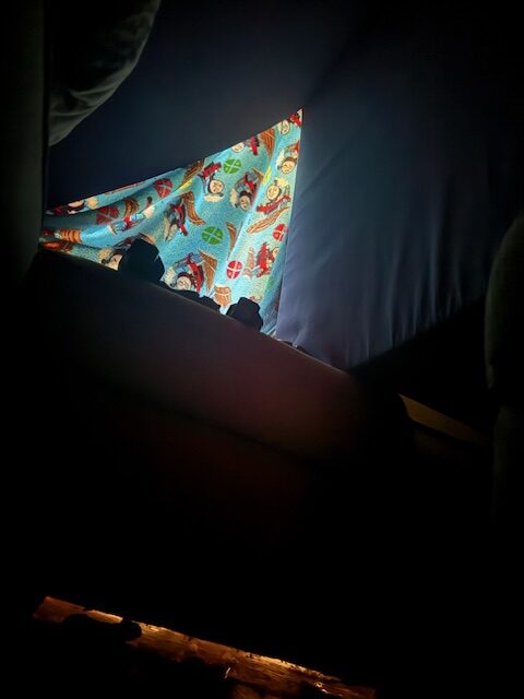 My kids, especially my son, love a good fort and they love a good Nerf battle. Sometimes they can have one without the other but they really do make a great pair. This photo is from the inside of one recent fort. I couldn’t fit in to see the way the sunlight shone through the blanket and my son wanted me to see how pretty it was so he took this photo for me. 🙂 They use chairs, every blanket we own, our Nugget couch, our actual couch, and set to work. I’ve always thought these Tote-a-Fort kits would be nice but we’ve never invested in a set. Because my friend accidentally shot her husband’s eye with a Nerf dart and he’s had several surgeries because of it, I feel like I must recommend everyone to wear safety goggles whether they’re actively participating in the battle or just a bystander. There are so many sets on Amazon for cheap. We just bought several dozen so we always have them on hand and have enough for visitors when they come over.